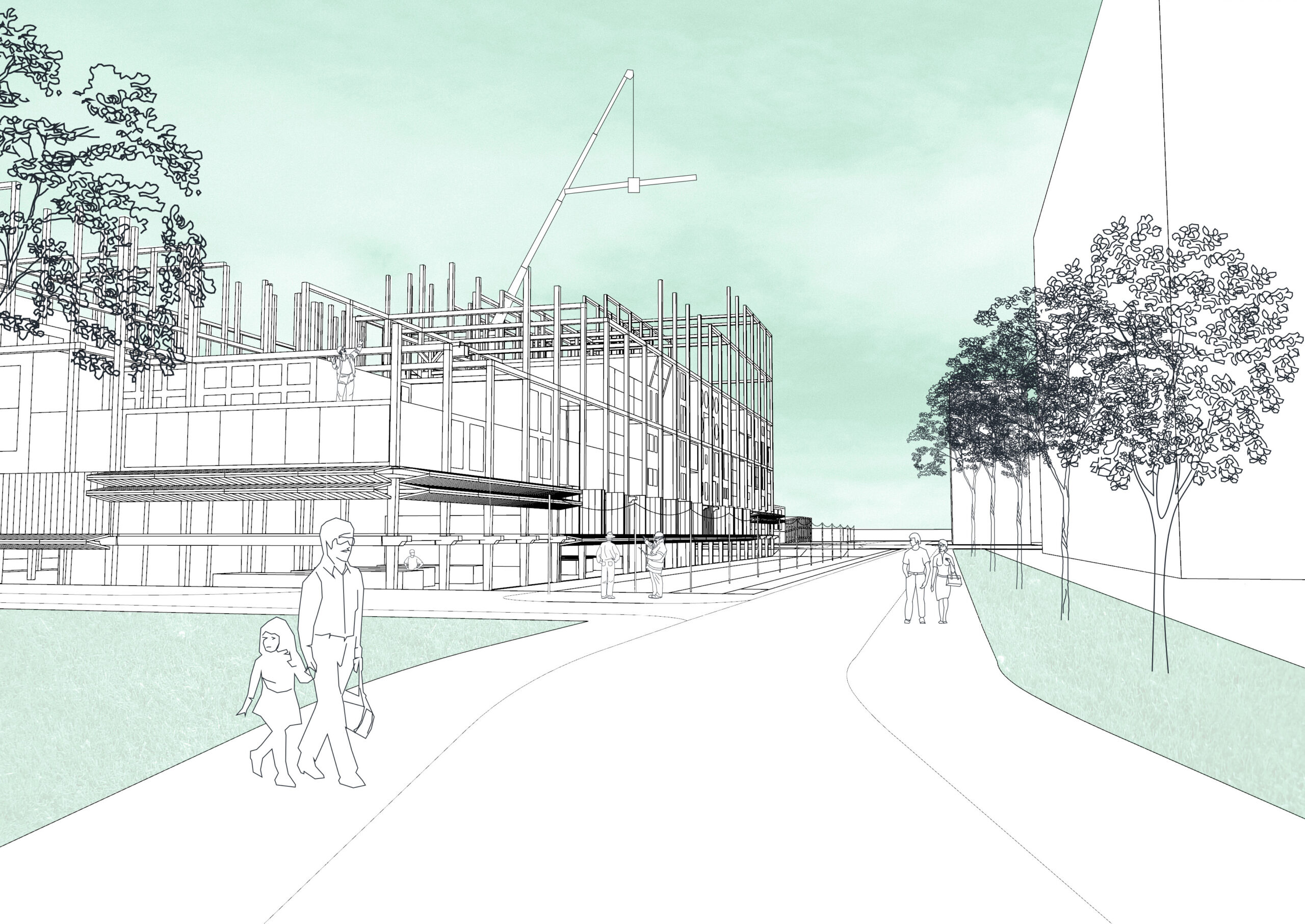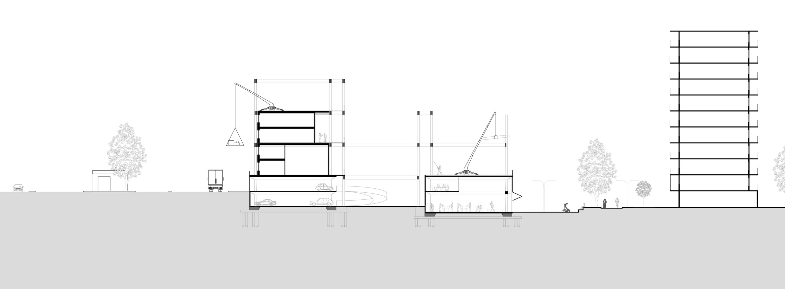 De eerste stap is het renoveren van de "plinten" en het verstevigen van de bestaande constructie van het eerste parkeergebouw. De buurtbewoners kunnen gebruik maken van de plint voor commerciƫle en horeca activiteiten, terwijl de dakterrassen kunnen worden gebruikt als stadstuin of bijvoorbeeld een buitenbioscoop. In nauw overleg met de nieuwe bewoners wordt een ontwerp gemaakt voor de bovenbouw, waarbij bewoners de gelegenheid krijgen om hun eigen woning te ontwerpen.